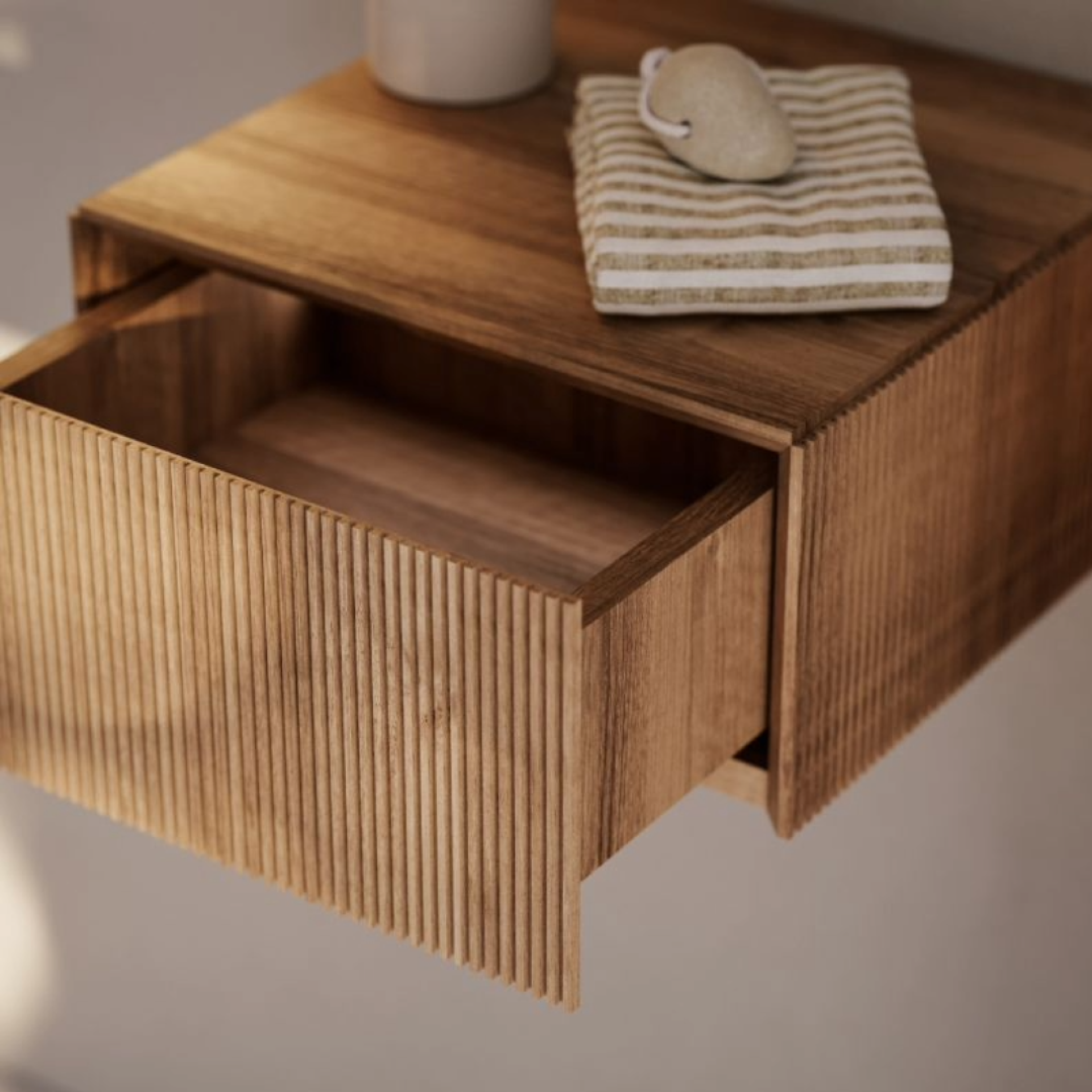 Plissé představuje dokonalou kombinaci přírodních materiálů, geometrické přesnosti a elegantního italského designu, která proměňuje každý prostor v nadčasový interiér.