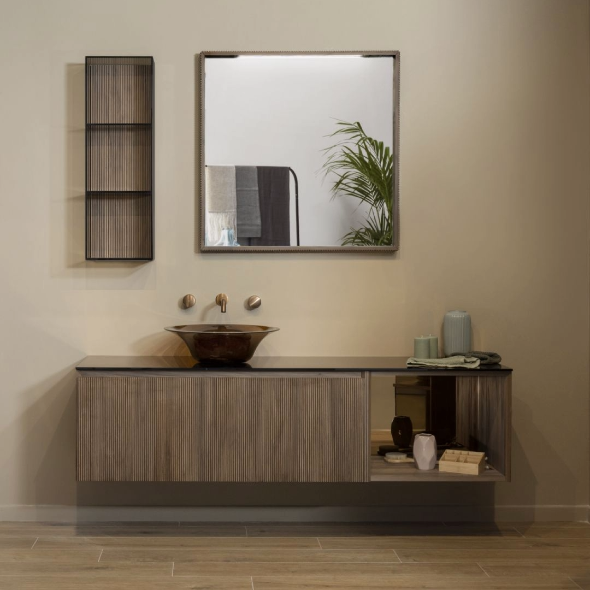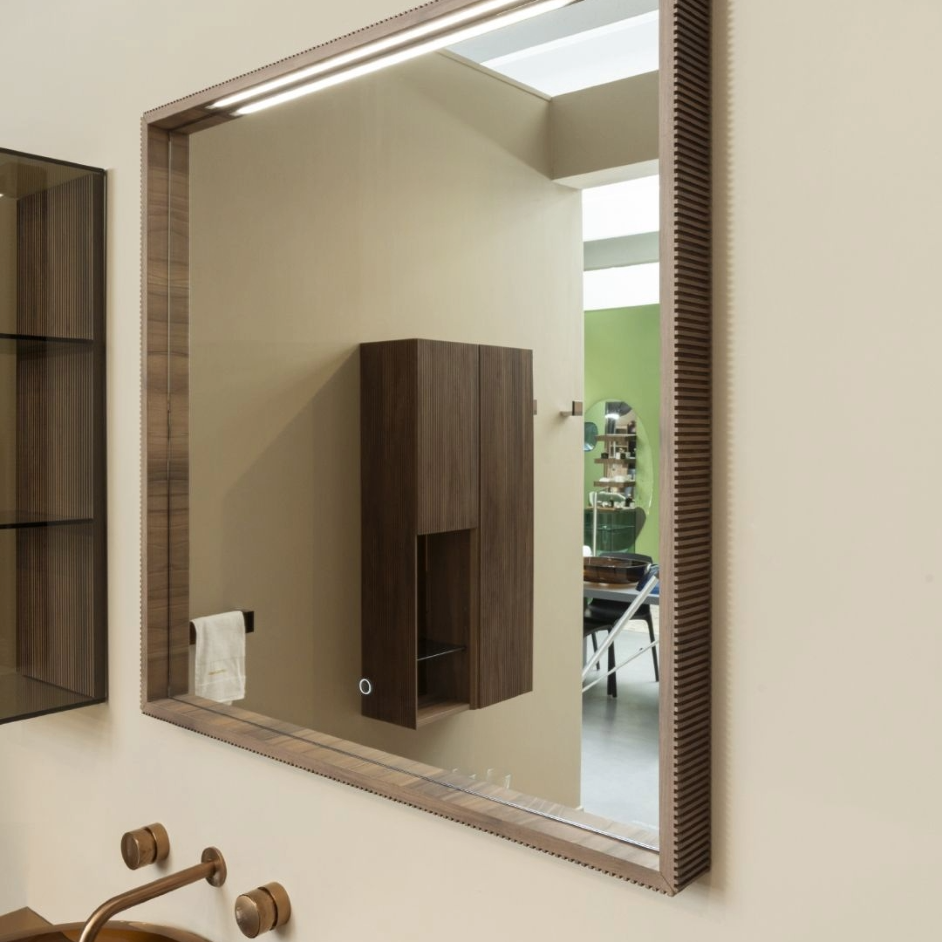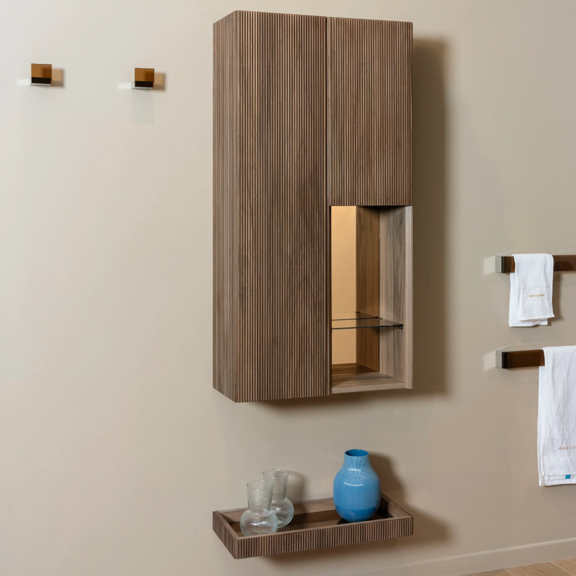 Rozšířená kolekce Plissé dnes zahrnuje úložné skříňky, pulty i doplňky, které vynikají precizním zpracováním a smyslem pro detail. Nově je kolekce nabízena také v provedení „Groove“ wood s ořechovou dýhou, doplněnou o skleněné nebo barevně zrcadlové desky a doplňky.